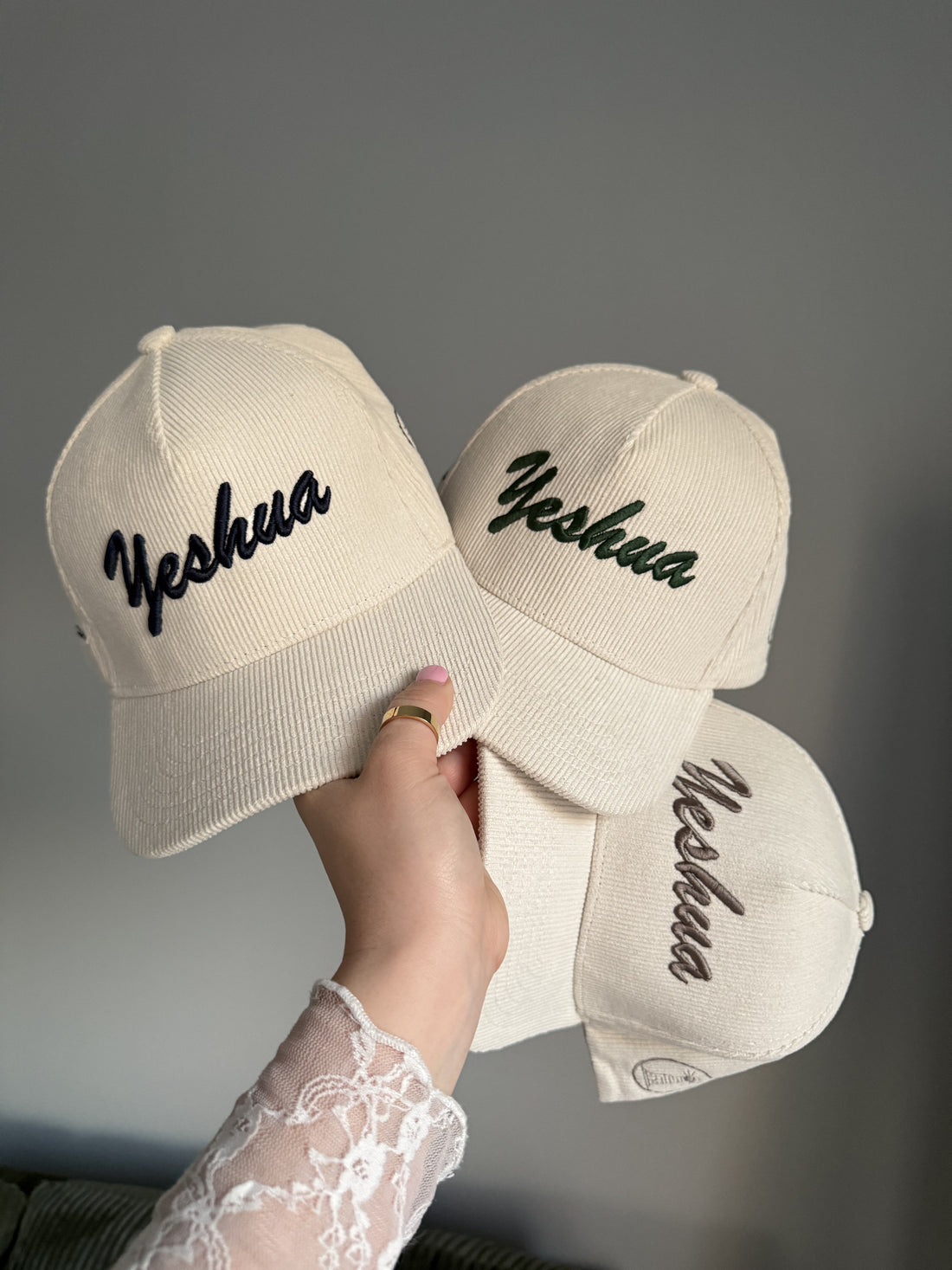 Yeshua Custom Embroidered Hat – 3D Script Design, Modern Faith Apparel