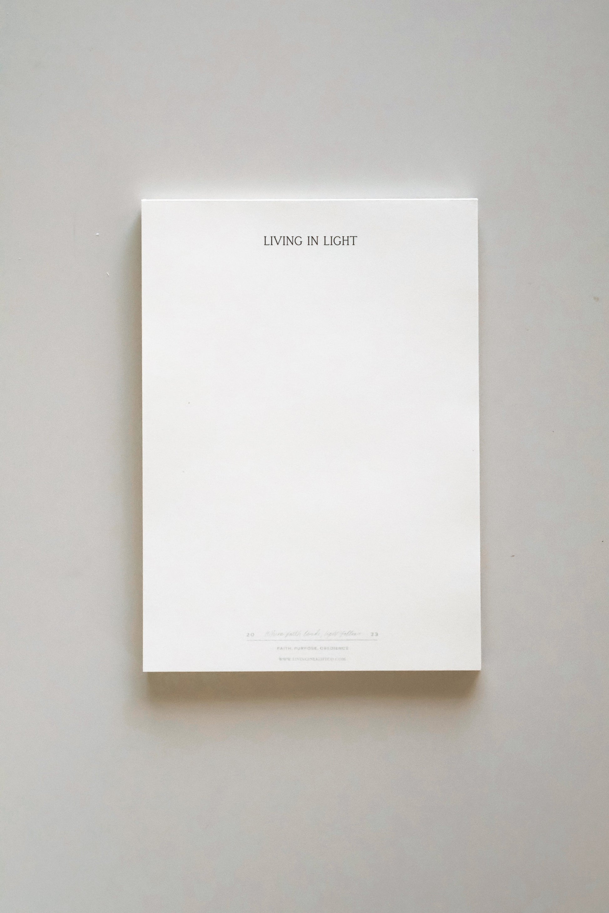 All four Living in Light notepads in one value bundle. Calm design, cream 100 gsm paper, 55 pages each. Perfect alongside our planners or on their own.