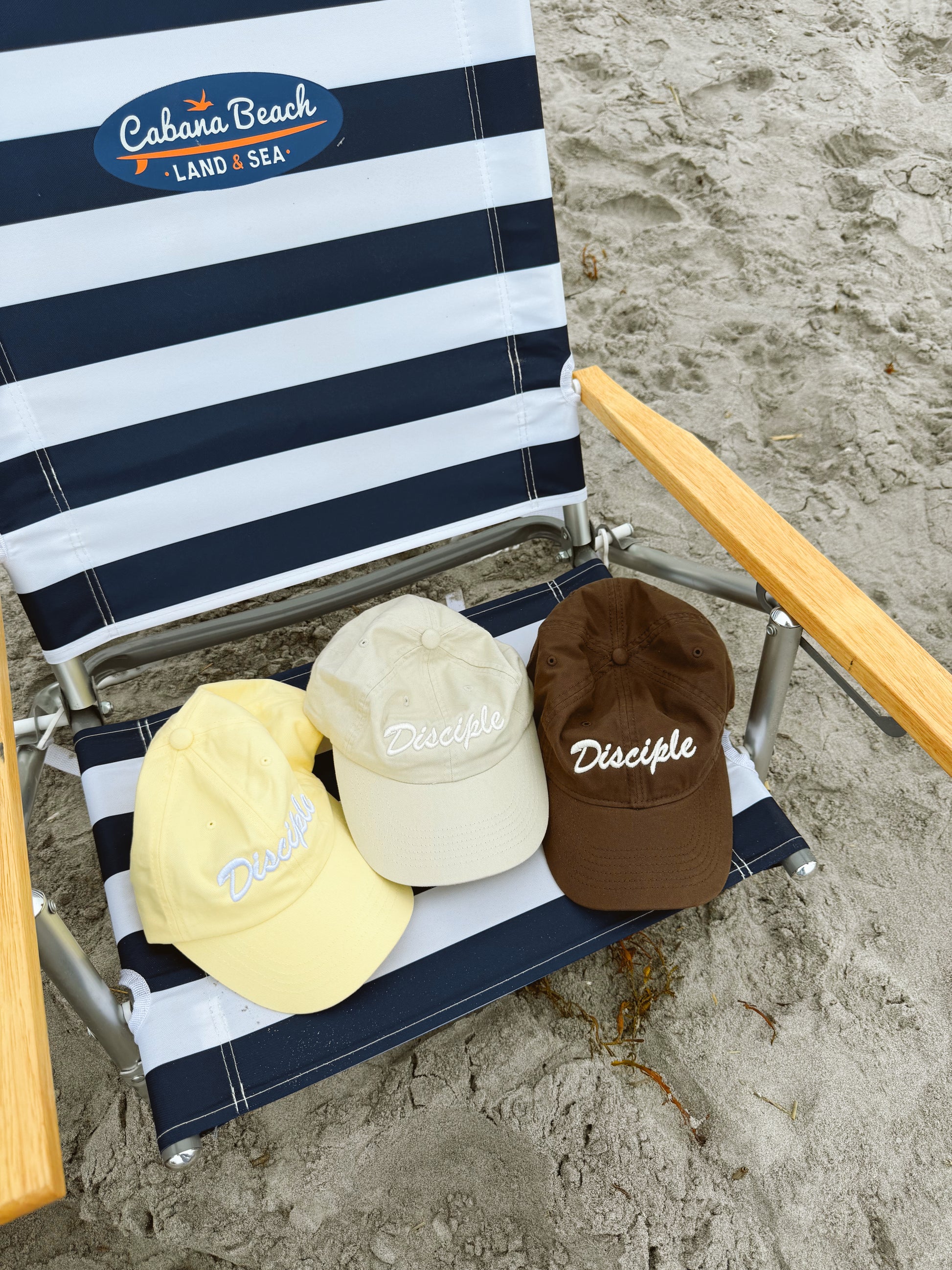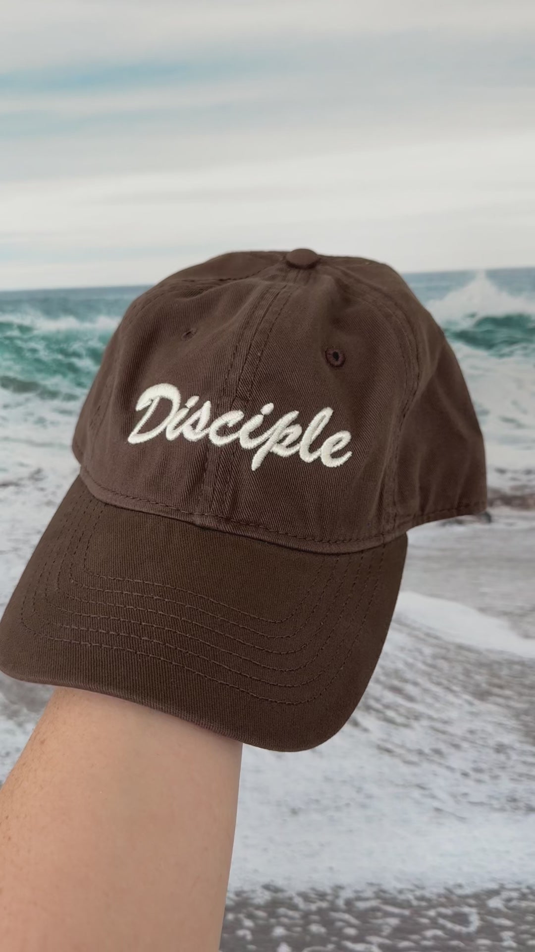 Minimal Christian apparel you can wear daily. This DISCIPLE dad hat features bold 3D puff embroidery, a low-profile unstructured fit, curved brim, and adjustable strapback for all-day comfort. Perfect for church, everyday streetwear, youth group, missions trips, and gifts. Other colors available on separate listings.