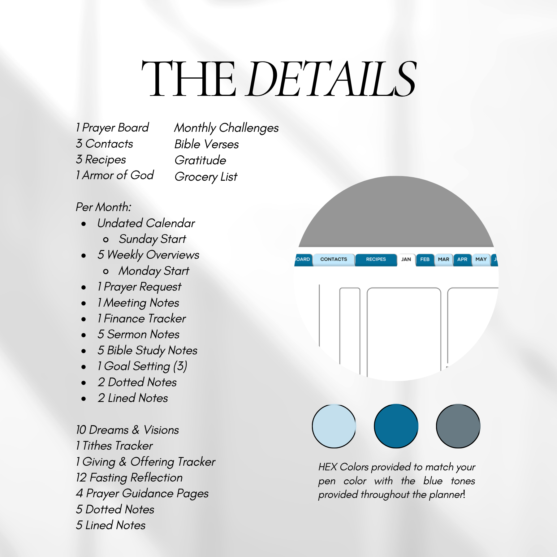 NEW V3 Digital Download Christian Planner Blue Tones Reusable – Bible Study, Goal Setting, Sermon Notes, Prayer Requests, Fasting Reflection & More | PDF Modern Christian Planner